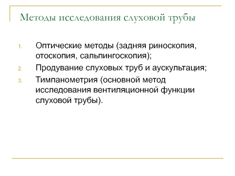 Оптические методы (задняя риноскопия, отоскопия, сальпингоскопия);