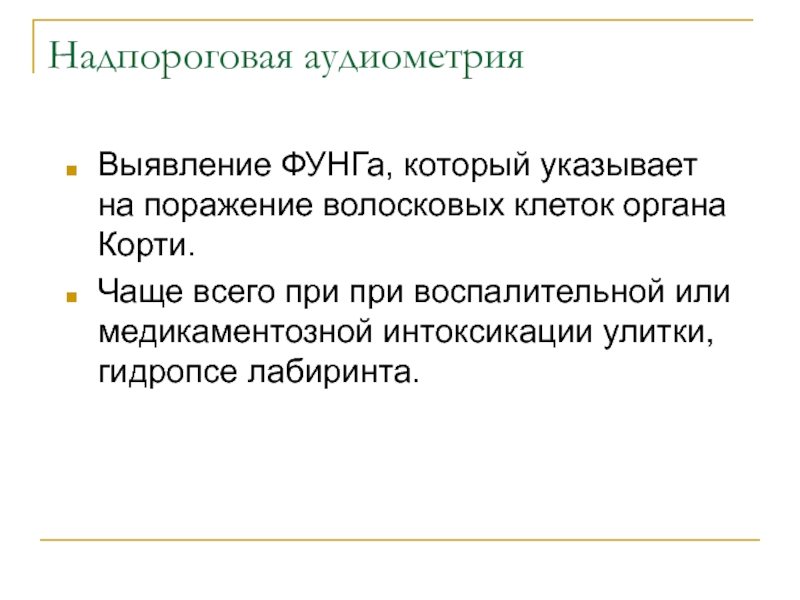 Выявление ФУНГа, который указывает на поражение волосковых клеток органа