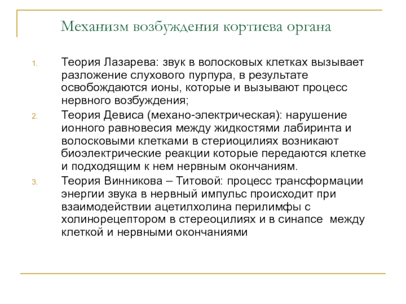 Адекватный раздражитель - тональные или шумовые сигналы, интенсивность которых