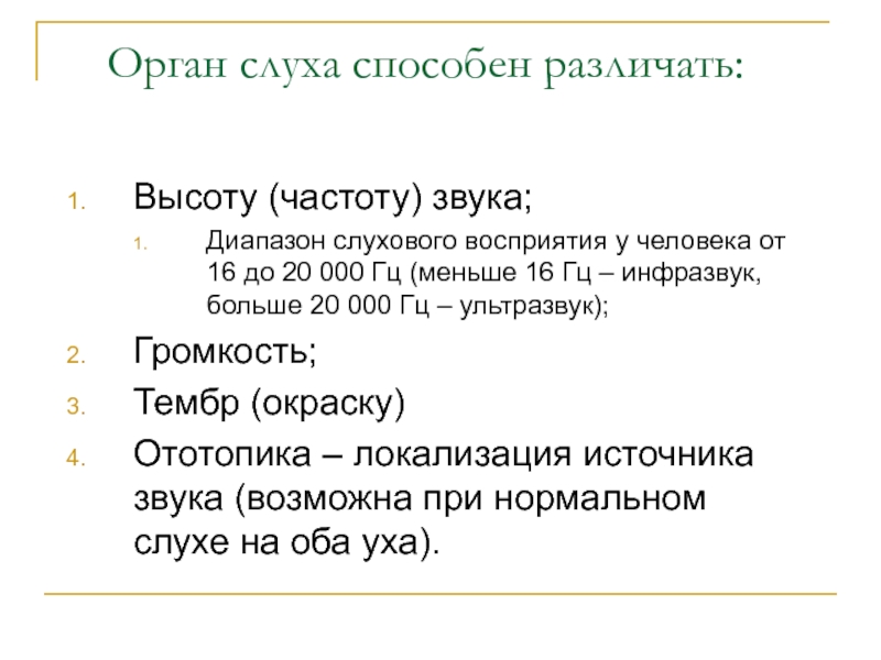 Ототопика – локализация источника звука (возможна при нормальном слухе на оба уха).
