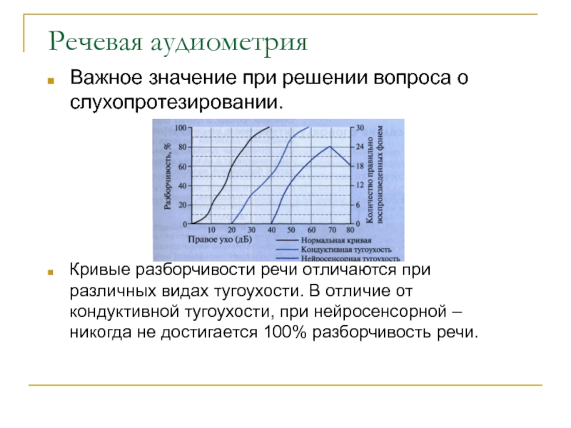 при нейросенсорной – никогда не достигается 100% разборчивость речи.