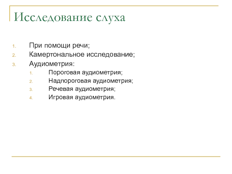 Слайд 1Клиническая анатомия и физиология органа слуха, методы исследования слуха