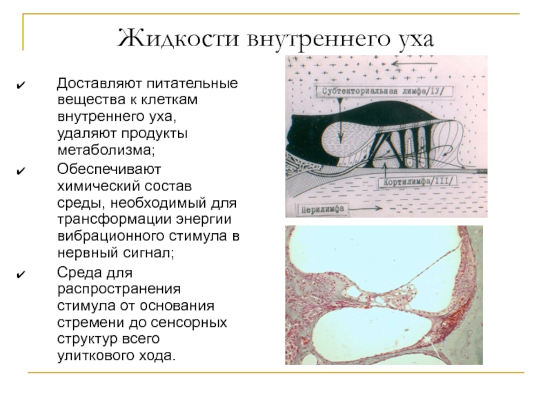 Среда для распространения стимула от основания стремени до сенсорных структур всего улиткового хода.