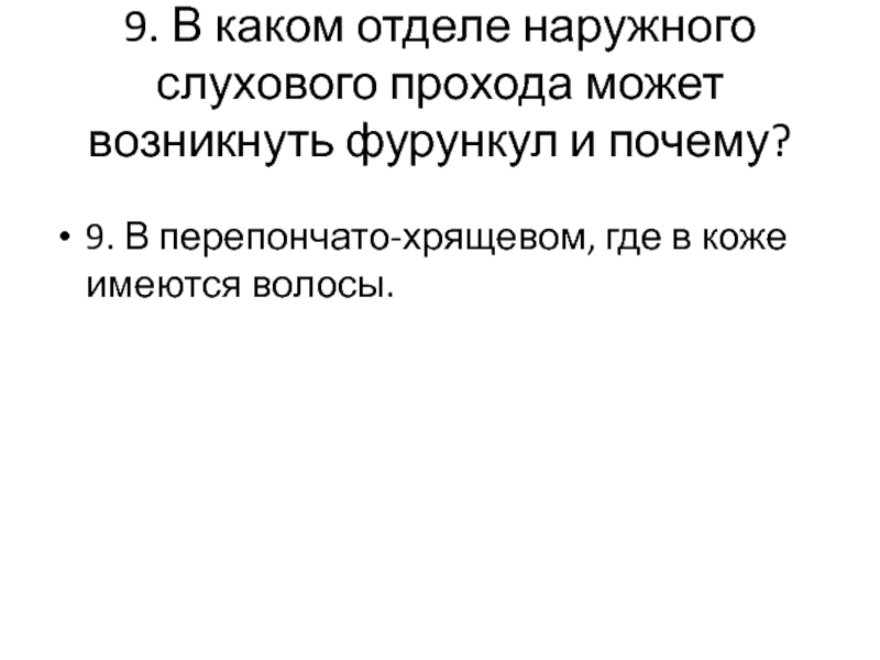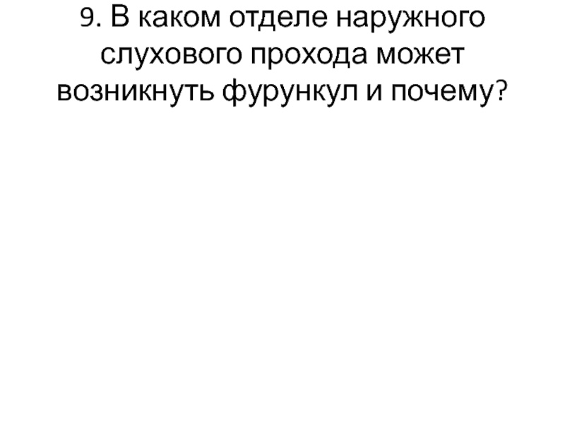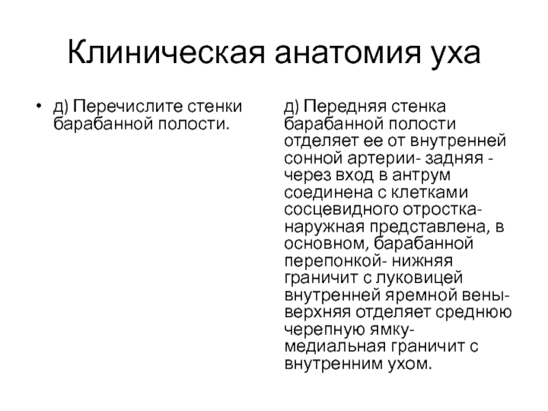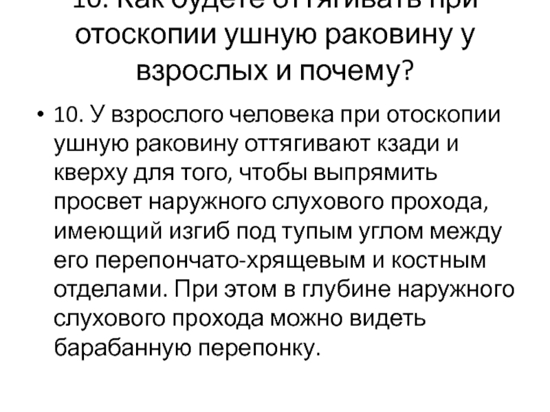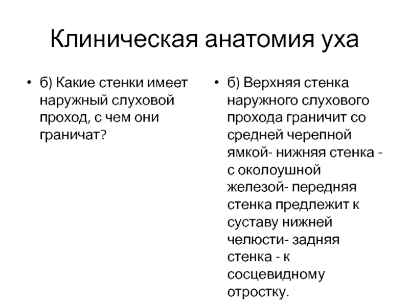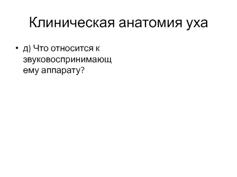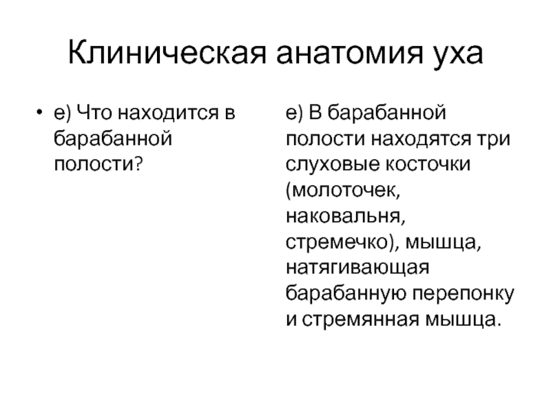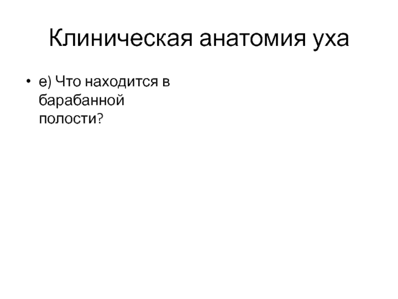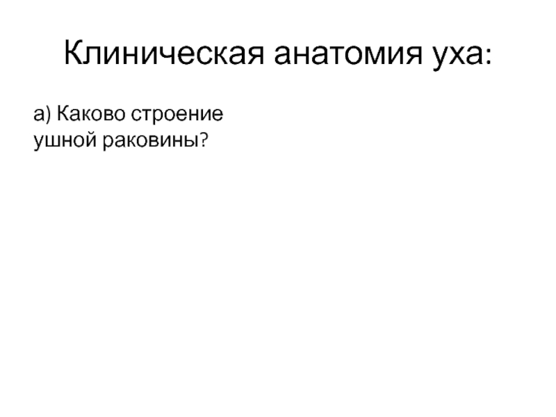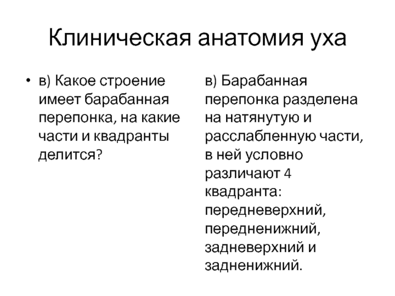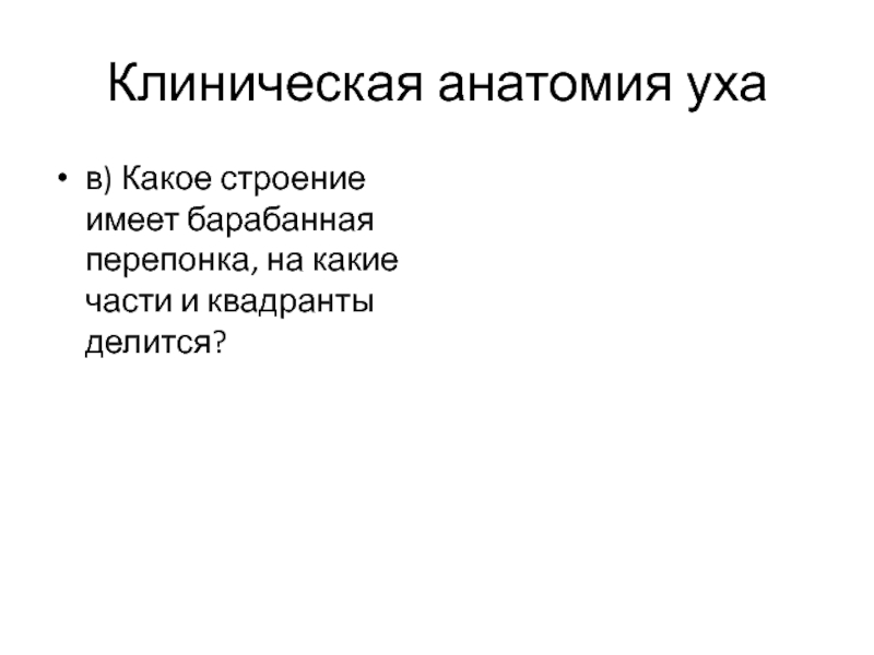 по следующим образованиями: ушная раковина, наружный слуховой проход, барабанная перепонка,