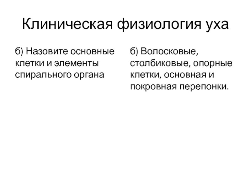 Волосковые, столбиковые, опорные клетки, основная и покровная перепонки.
