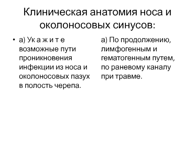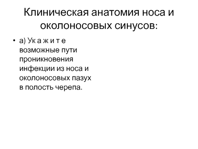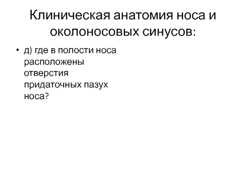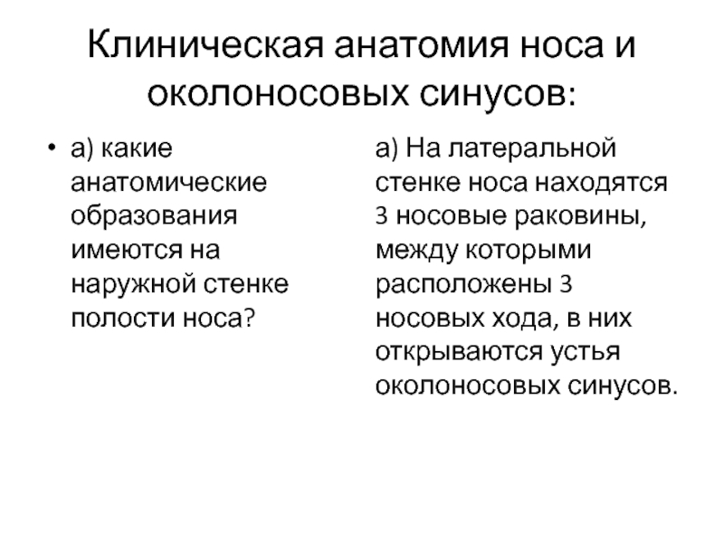 Слайд 1Клиническая анатомия носа и околоносовых синусов: