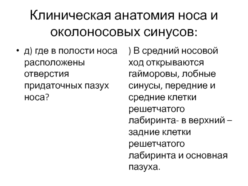 Слайд 13Клиническая анатомия носа и околоносовых синусов: