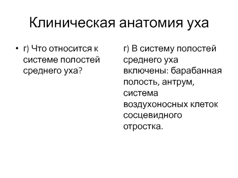 В систему полостей среднего уха включены: барабанная полость, антрум, система