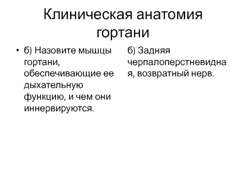 б) Назовите мышцы гортани, обеспечивающие ее дыхательную функцию,