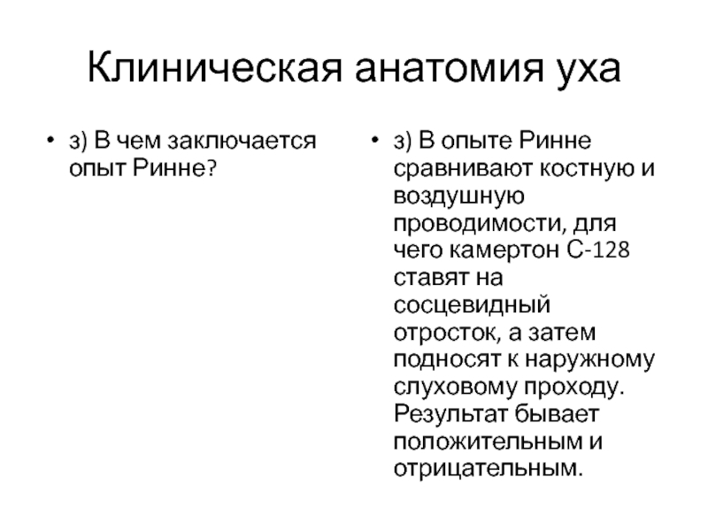 опыте Ринне сравнивают костную и воздушную проводимости, для чего камертон