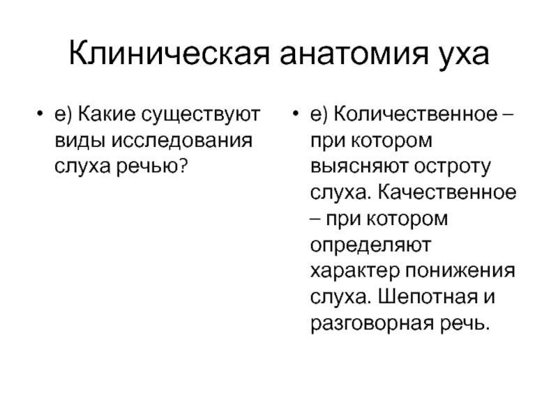 Количественное – при котором выясняют остроту слуха. Качественное – при