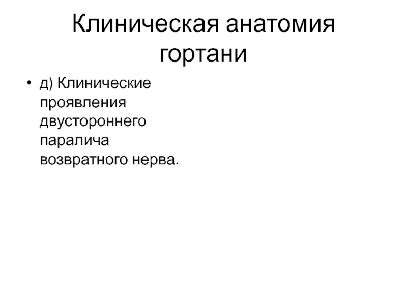 д) Клинические проявления двустороннего паралича возвратного нерва.