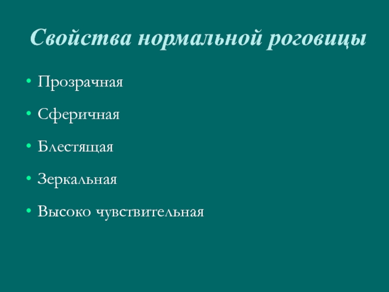 Слайд 50Свойства нормальной роговицы