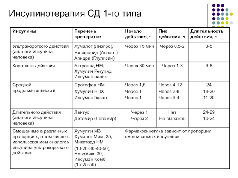 Репаглинид – начало действия через 5-10 мин. Продолжит.действия 3 часа. Выводится с желчью. Назначают в дозе 0,5 до 4 мг перед приёмом пищи.