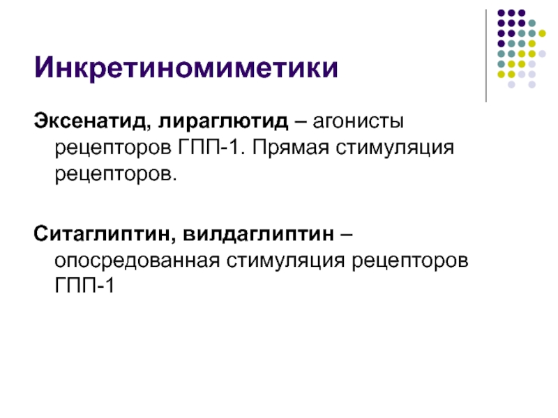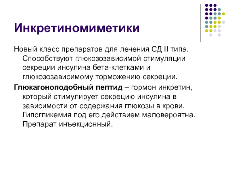 Новый класс препаратов для лечения СД II типа. Способствуют глюкозозависимой