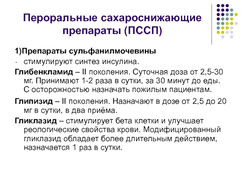 Слайд 11Пероральные сахароснижающие препараты (ПССП)