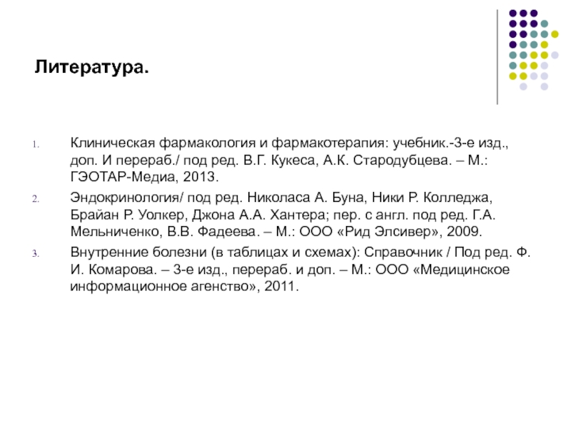 Внутренние болезни (в таблицах и схемах): Справочник / Под ред. Ф.И. Комарова. – 3-е изд., перераб. и доп. – М.: ООО «Медицинское информационное агенство», 2011.