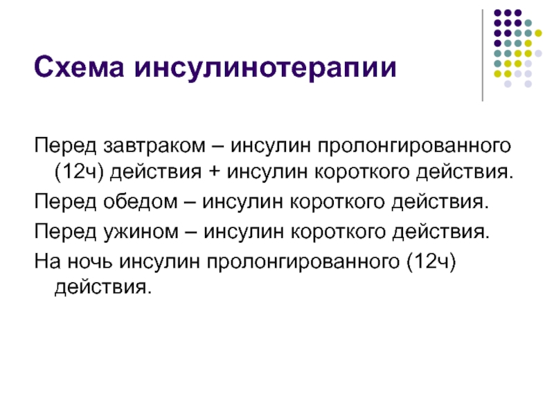 Перед завтраком – инсулин пролонгированного (12ч) действия + инсулин