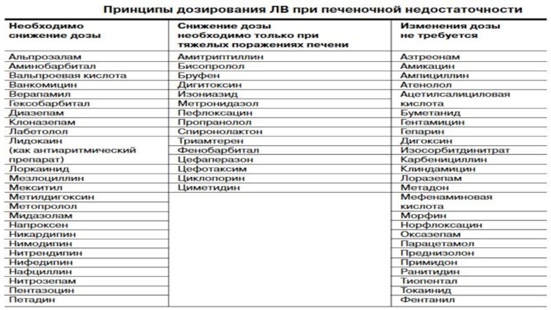 Для большинства других метаболизирующихся печенью лекарственных средств (с высокой или средней степенью печеночной экскреции) коррекции должна подвергаться только поддерживающая доза.