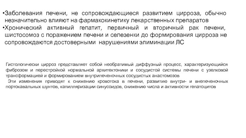 Слайд 16Заболевания печени, не сопровождающиеся развитием цирроза, обычно незначительно влияют на