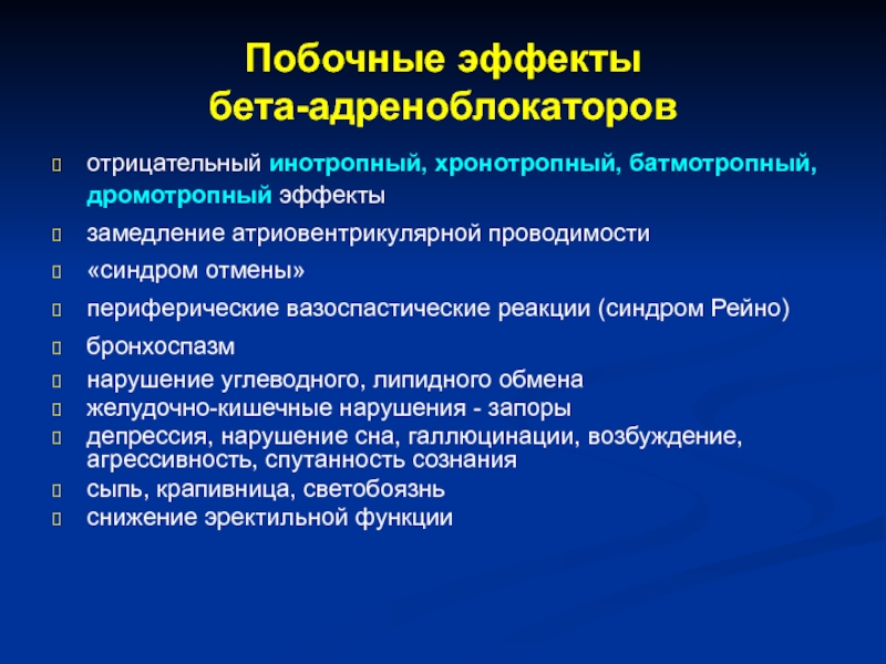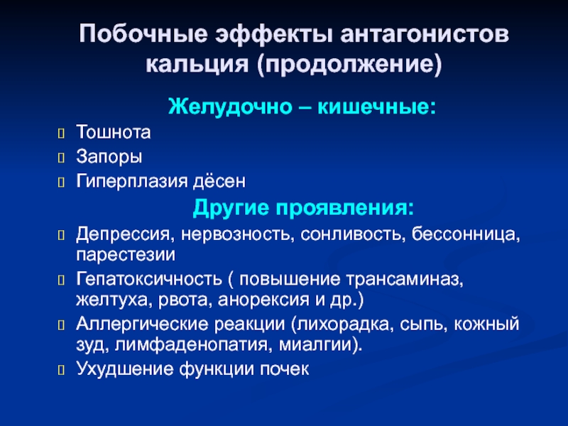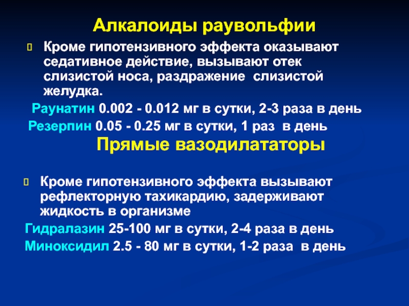 Кроме гипотензивного эффекта оказывают седативное действие, вызывают отек слизистой