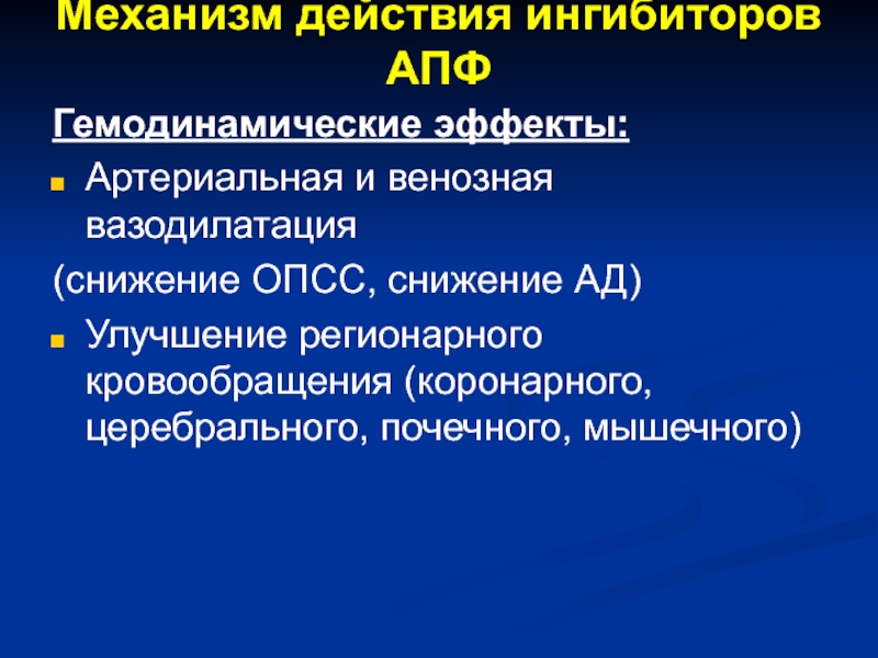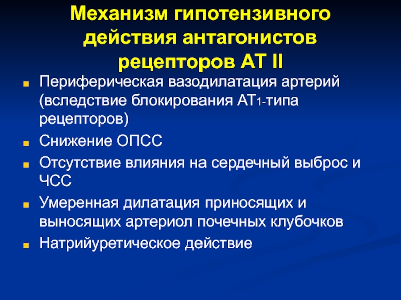 периферическое сосудистое сопротивление (ОПСС), что тоже способствует снижению АД