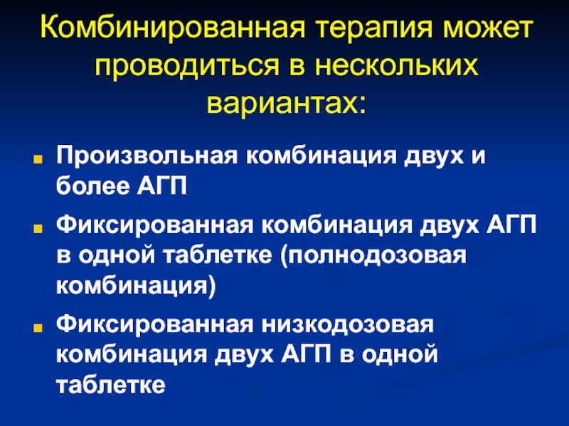 Слайд 58Комбинированная терапия может проводиться в нескольких вариантах: