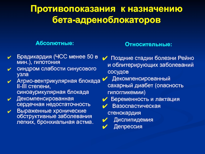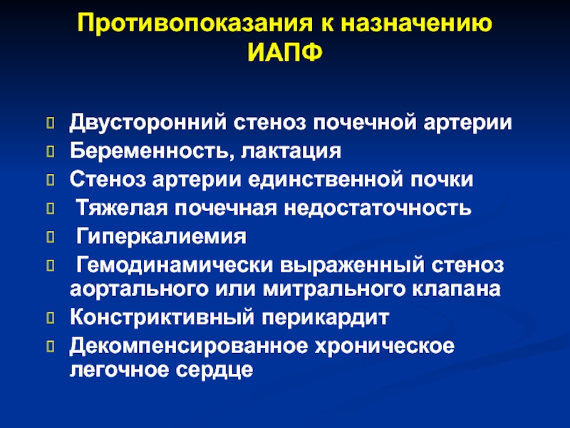 ХСН (IV ст. по классификации NYHA); нестабильная стенокардия.