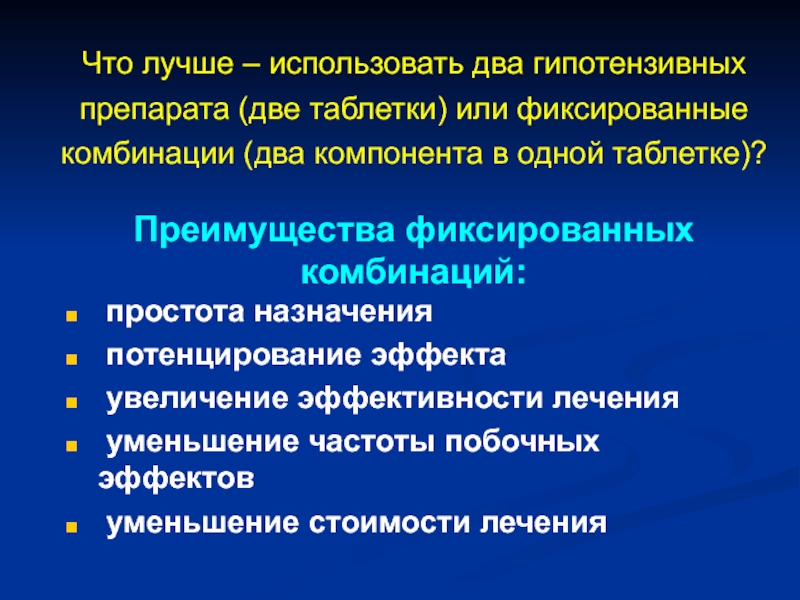 два гипотензивных препарата (две таблетки) или фиксированные комбинации (два компонента в одной таблетке)?