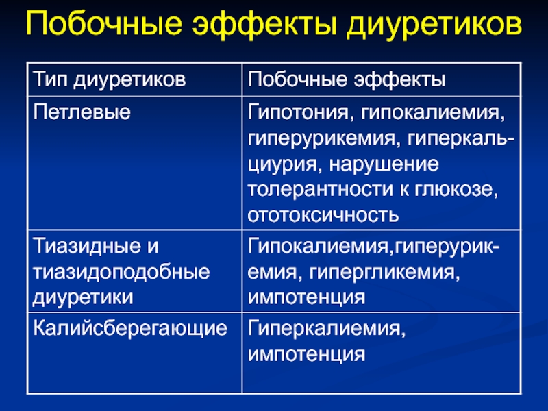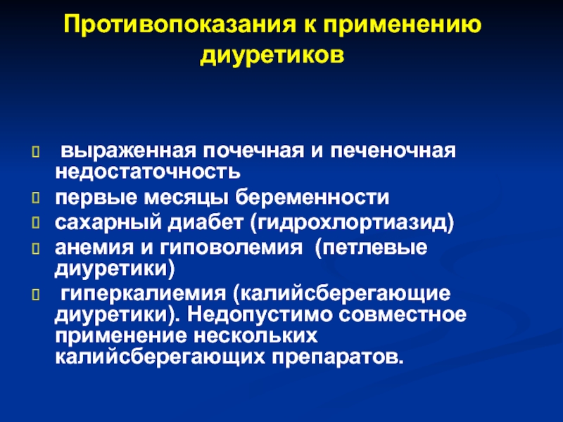 (калийсберегающие диуретики). Недопустимо совместное применение нескольких калийсберегающих препаратов.