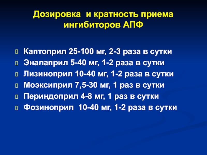 Гидралазин 25-100 мг в сутки, 2-4 раза в день