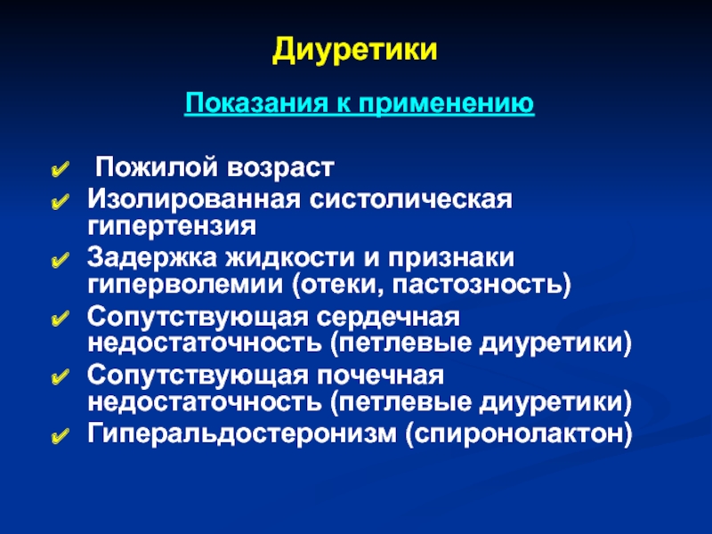 Слайд 5Диуретики- препараты, оказывающие избирательное влияние на почки, вследствие чего увеличивается