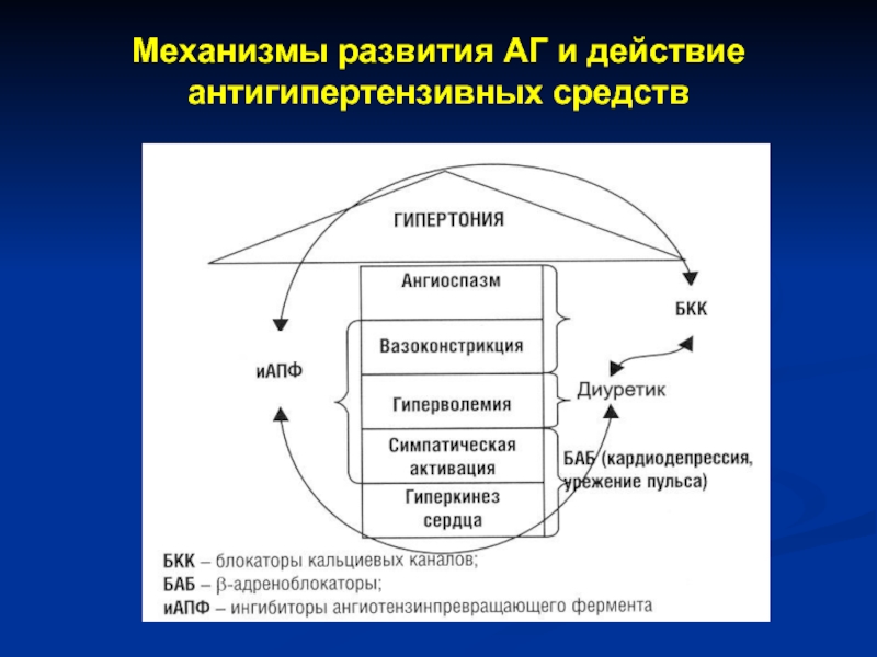 Слайд 2Механизмы развития АГ и действие антигипертензивных средств