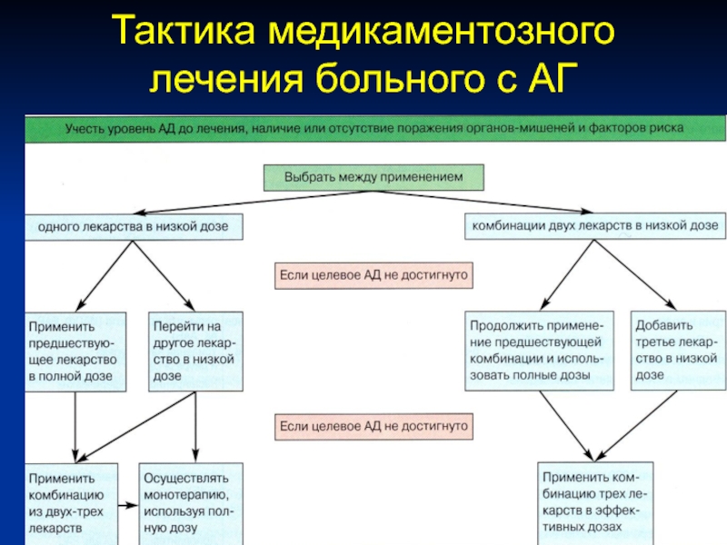 Слайд 54Тактика медикаментозного лечения больного с АГ