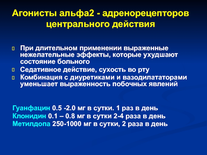 Слайд 51Агонисты альфа2 - адренорецепторов