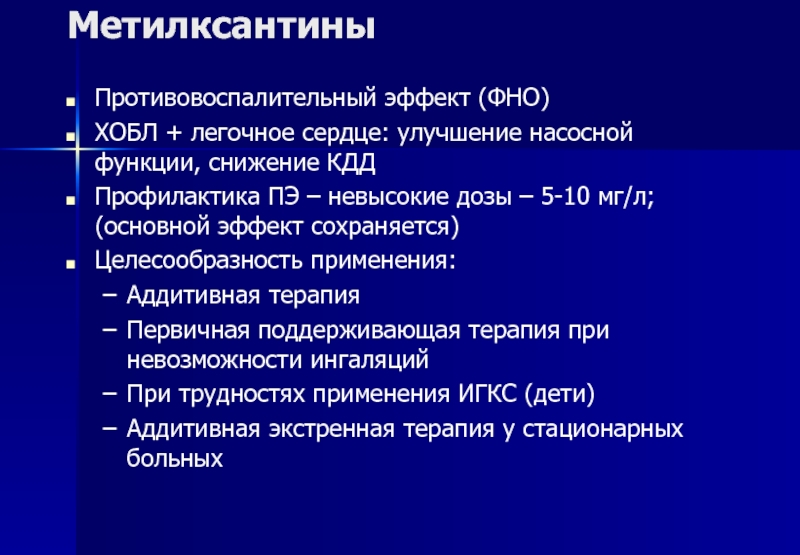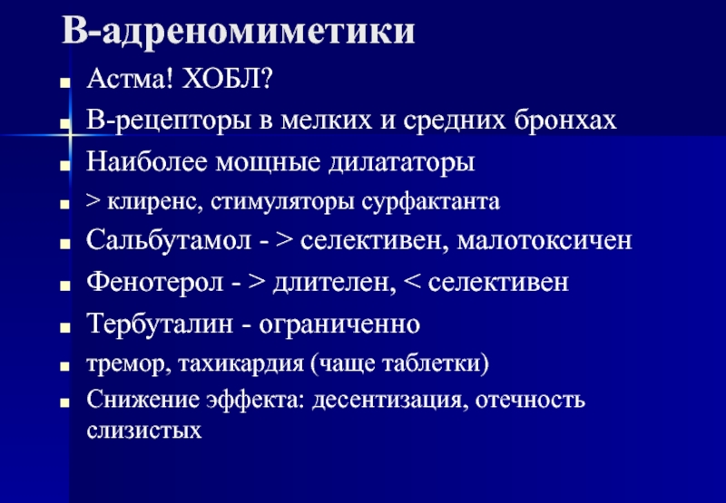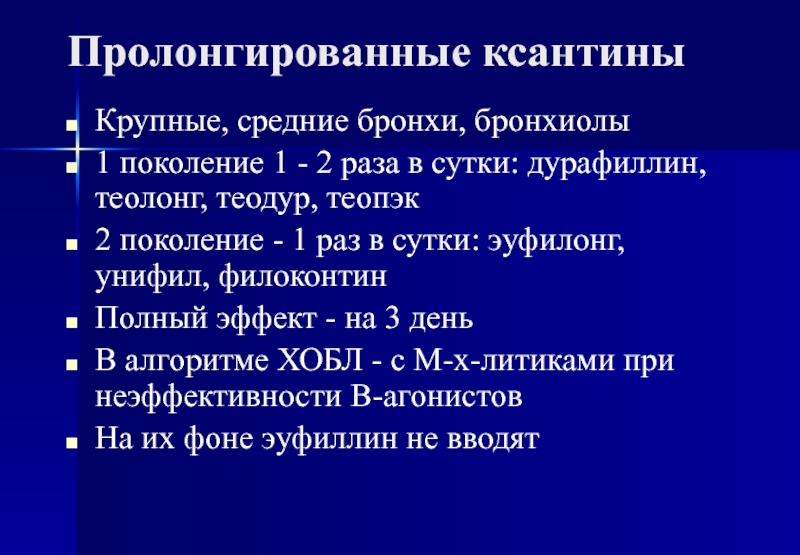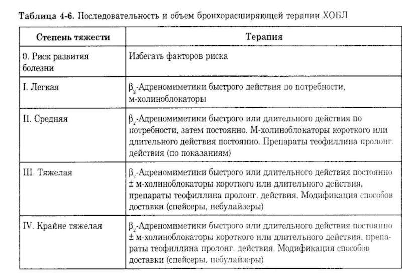 Ипра-, тиотропия бромид.(моно-, комбинация с др.) β2-агонисты длительн. (моно, комбинация с др.) Теофиллин длительн. (только комбинация !)