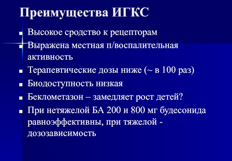 При нетяжелой БА 200 и 800 мг будесонида равноэффективны, при тяжелой - дозозависимость