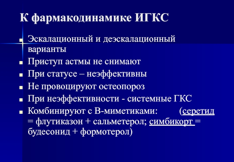 с В-миметиками: (серетид = флутиказон + сальметерол; симбикорт = будесонид + формотерол)