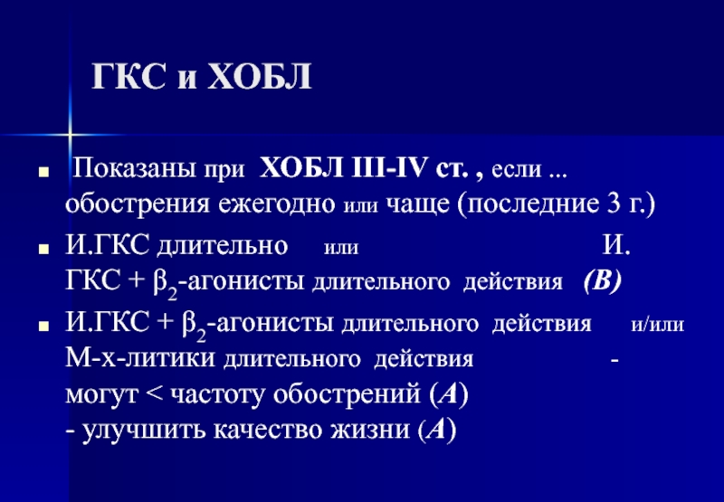 И.ГКС + β2-агонисты длительного действия и/или М-х-литики длительного действия - могут < частоту обострений (А) - улучшить качество жизни (А)