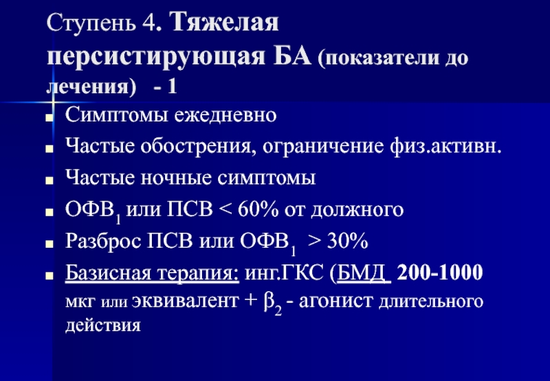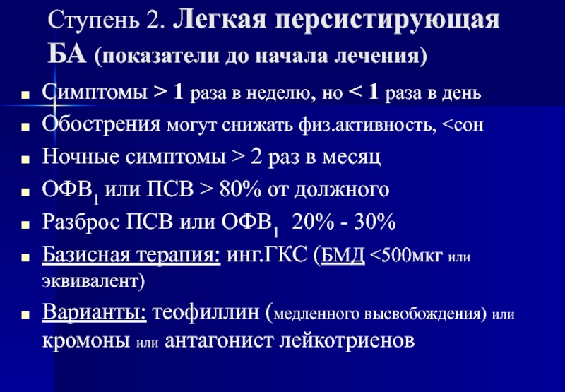 Слайд 11Ступень 2. Легкая персистирующая БА (показатели до начала лечения)