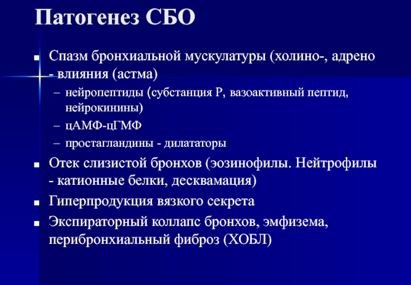 Спазм бронхиальной мускулатуры (холино-, адрено - влияния (астма)