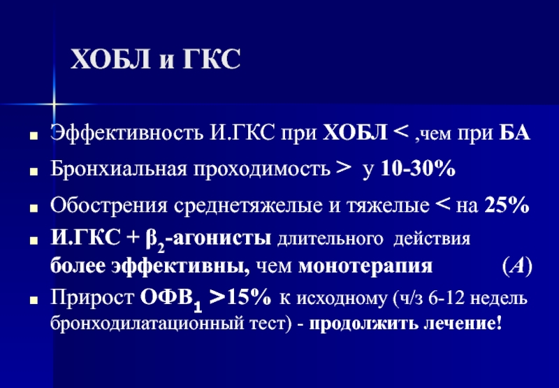 Эффективность И.ГКС при ХОБЛ < ,чем при БА