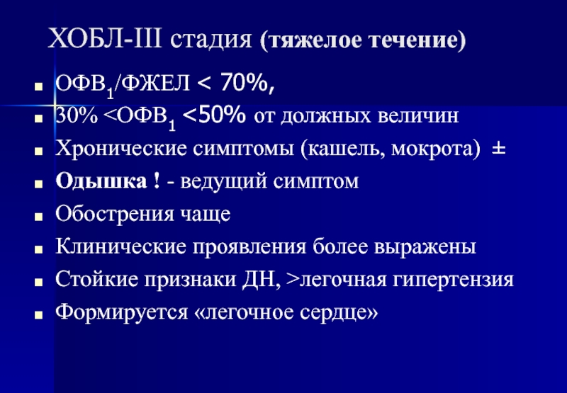 Слайд 52ХОБЛ-III стадия (тяжелое течение)