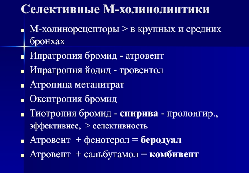Блок М1 (ганглии) и М3 (бронхи) рецепторов; М2