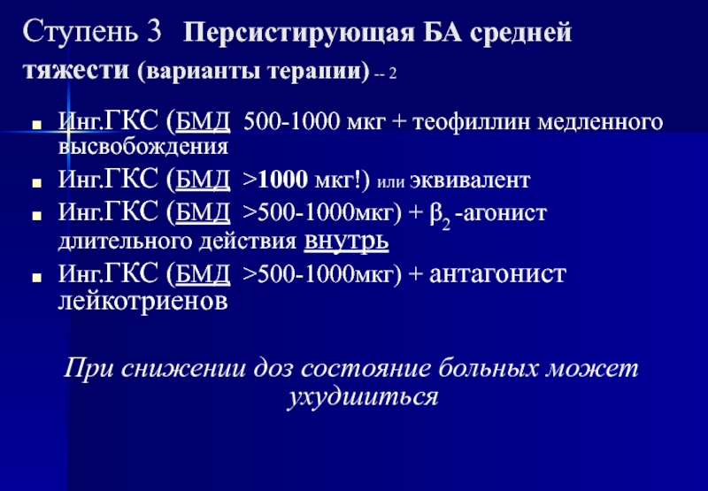 Базисная терапия: инг.ГКС (БМД <500мкг или эквивалент)