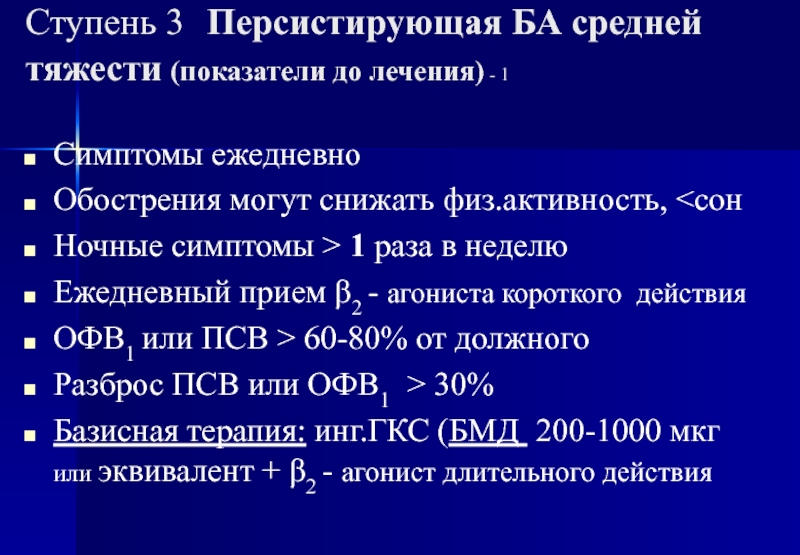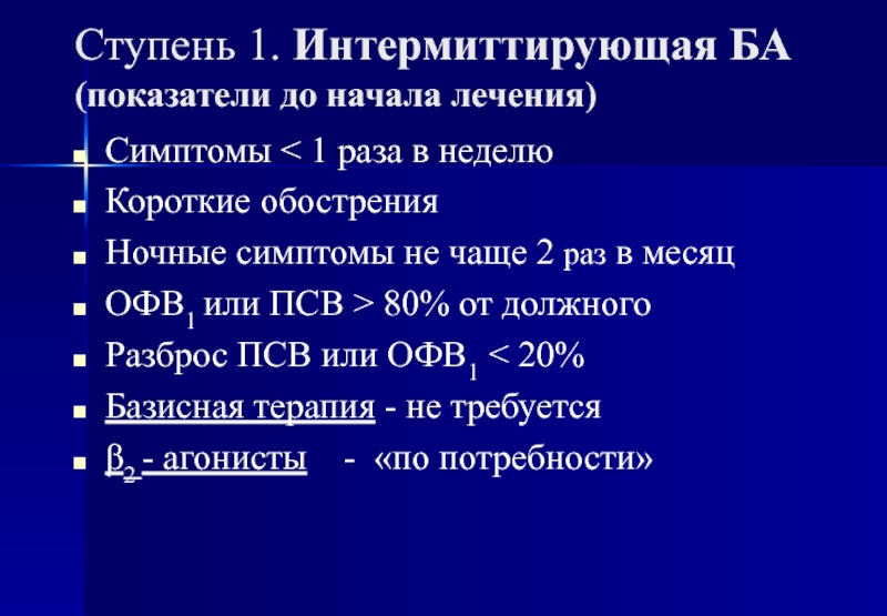Слайд 11Ступень 2. Легкая персистирующая БА (показатели до начала лечения)