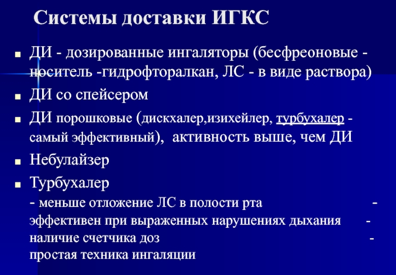 ДИ - дозированные ингаляторы (бесфреоновые - носитель -гидрофторалкан,