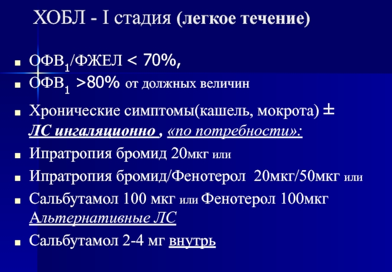 Слайд 48ХОБЛ - I cтадия (легкое течение)