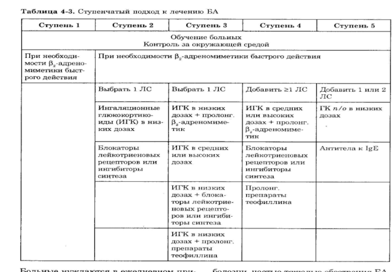 II ступень β2-агонисты короткого действ. или М-х-литики короткого действия (по потребности) Реабилитация