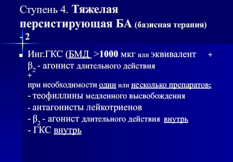 Базисная терапия: инг.ГКС (БМД <500мкг или эквивалент)